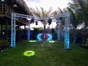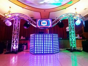 Sonido fuerte y luces con 4 cabezas móviles LED. 2 Pantallas para video , video mezclas o presentaciones, además se puede agregar nuestro karaoke interactivo con un costo adicional para que sus invitados sean las estrellas de la noche.