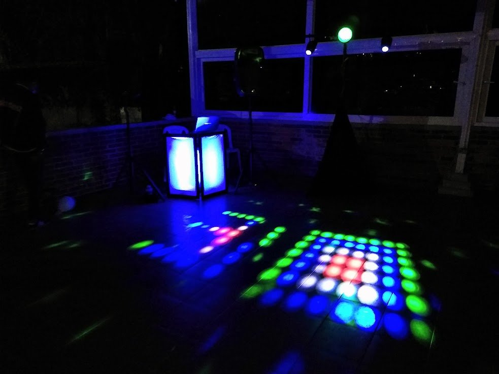 Fachada del DJ iluminada