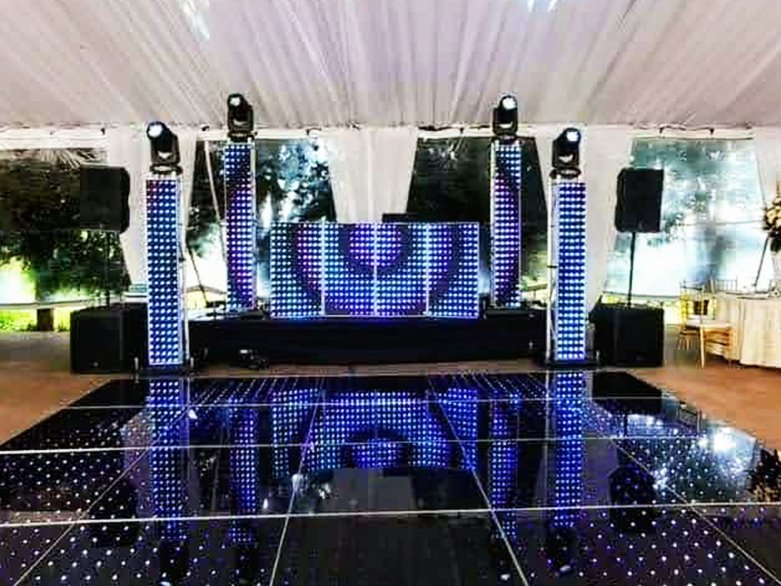 El show de este paquete es impresionante: incluye perimetrales con iluminación LED pixel y pista de baile video LED pixel sincronizados con figuras al ritmo de la música. Un espectáculo pensado para impresionar a todos sus invitados.